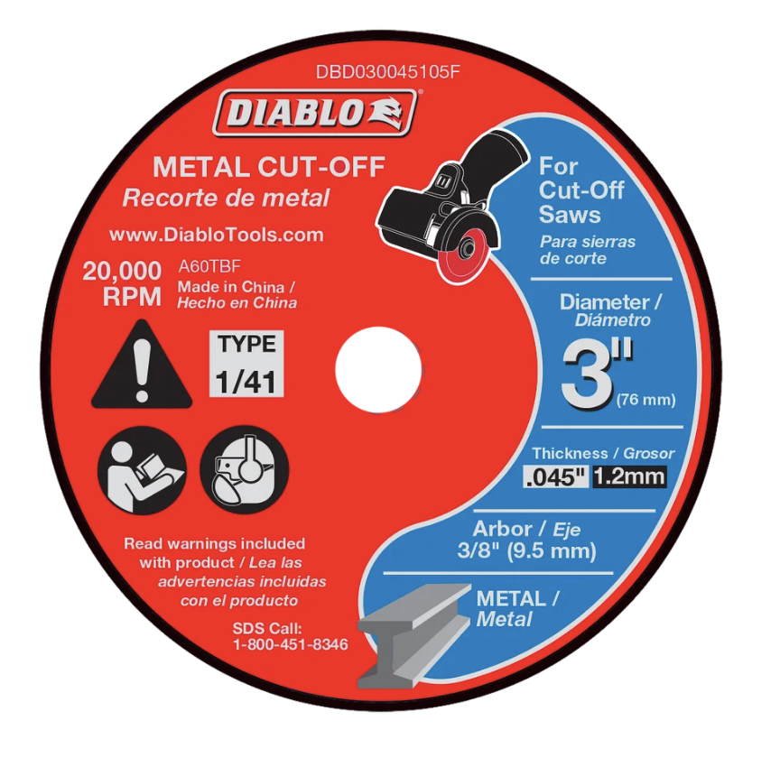 5 pack Diablo 3 Iinch Metal Cut-Off Disc .045 Thick – 3/8 Inch (9.5Mm) Arbor – Type 1 Hub – Thin Kerf Design – Premium Aluminum Oxide Blend For Use On Metal Materials – 20,000 Max Rpm – 5 Pack