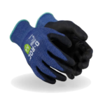 Ideal for delicate work that requires enhanced dexterity, these Magid® D-ROC® GPD486 Cut-Resistant Work Gloves are made of 18-gauge AeroDex® engineered yarn for great tactile sensitivity. The AeroDex shell delivers excellent level A5 cut resistance, while still being cooler and 50% lighter than a traditional HPPE safety glove of the same cut level. Touchscreen compatibility means workers don’t have to remove their gloves to use smartphones and tablets, increasing compliance and making it easier to stay in touch on the job. These nitrile coated work gloves are specially designed to channel oil away for a superb grip in light oil applications, and they feature a shield graphic that is color-coded by cut level, making it easy to identify cut level for compliance purposes. The color-coded overcast on these puncture-resistant gloves acts as a visual aid for sizing and helps prevent fraying.