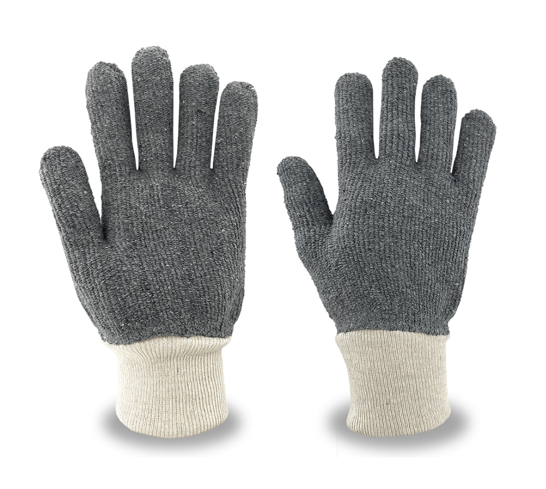 4108G uses a reversible design that allows for the replacement of a single glove at a time, which helps reduce costs. Seamless construction provides increased comfort and breathability, while the terry cloth material provides comfort and resistance to cuts, abrasions, and heat. The loop-out design enhances protection against intermittent contact with hot surfaces. The knit wrist prevents dirt and debris from entering the glove, and the ambidextrous pattern extends the lifespan.
