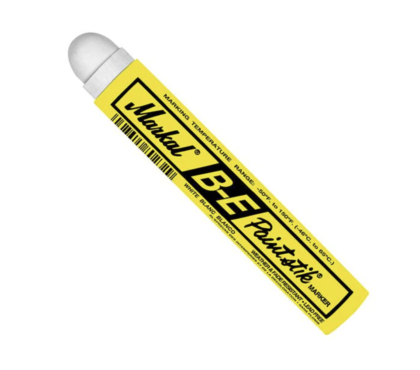 Markal® B-E® Paintstik® White Marker with a point size of 11/16″ features a soft solid paint for marking on rough or colder surfaces. Marker of length 4 3/4″ endures continued immersion in water for long marker life and offers a marking range of -50 to 150 deg F. The easy-to-hold paperboard holder secures the marker for optimum use and is weather and UV resistant.